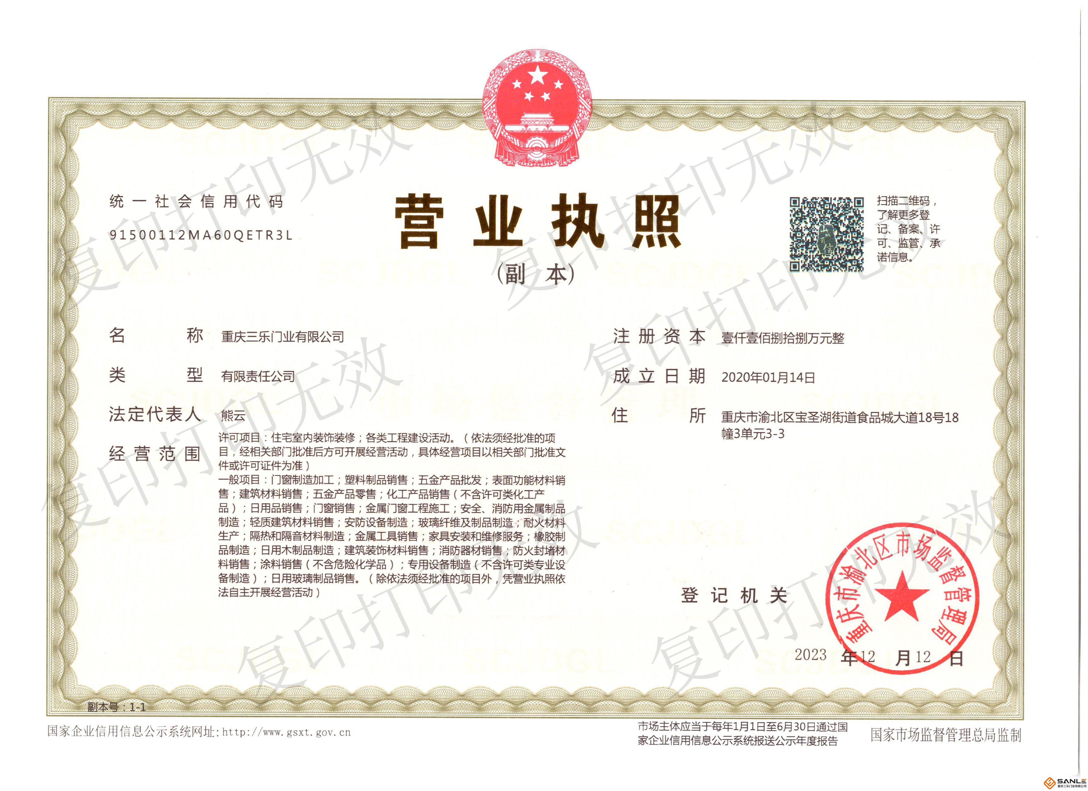 重慶三樂(lè)門(mén)業(yè)有限公司,位于重慶市渝北區(qū)食品大道廣告產(chǎn)業(yè)園,目前廠址已搬遷至重慶長(zhǎng)壽區(qū)工業(yè)園。注冊(cè)資本1188萬(wàn)元 ,員工100余人,公司實(shí)力雄厚,公司擁有先進(jìn)的生產(chǎn)設(shè)備及流水線。